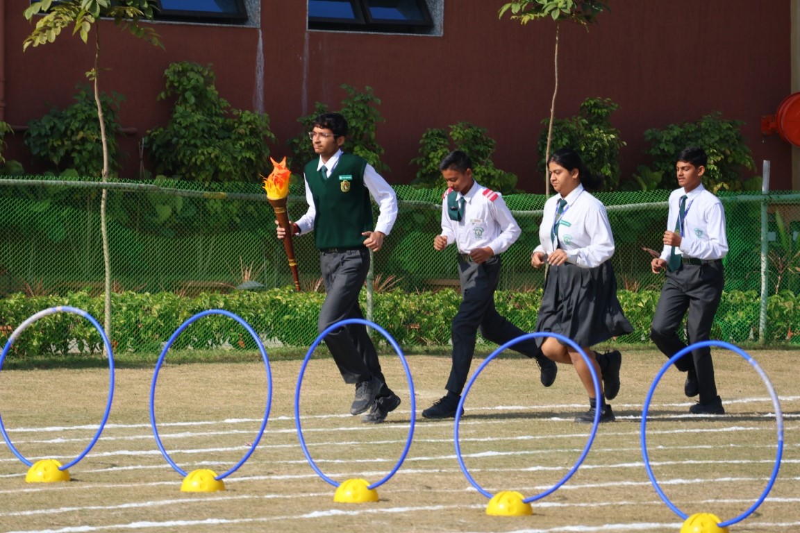 The event witnessed enthusiastic participation of more than 900 students from Grades 3 to 9, who showcased their talent through a series of track events and spectacular drills. The event commenced with the ceremonial Torch (Mashal) Run that marked the formal declaration of the Annual Sports Day open. Students captivated the audience with meticulously synchronised performances, including Lazim drills, Dumbbell drills, and a breath-taking Moving Pyramid display reflecting strength, coordination, teamwork, and discipline.