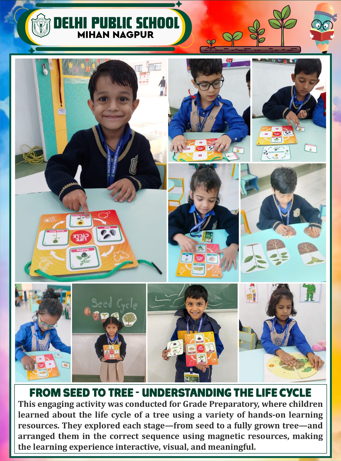 This engaging activity was conducted for Grade Preparatory, where children learned about the life cycle of a tree using a variety of hands-on learning resources. They explored each stage—from seed to a fully grown tree—and arranged them in the correct sequence using magnetic resources, making the learning experience interactive, visual, and meaningful.