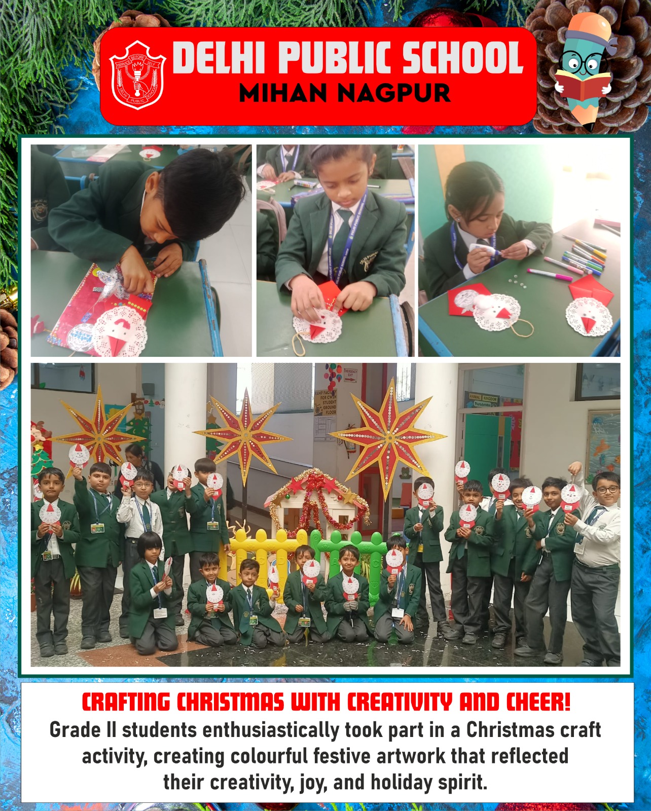 Grade II students enthusiastically took part in a Christmas craft activity, creating colourful festive artwork that reflected their creativity, joy, and holiday spirit.