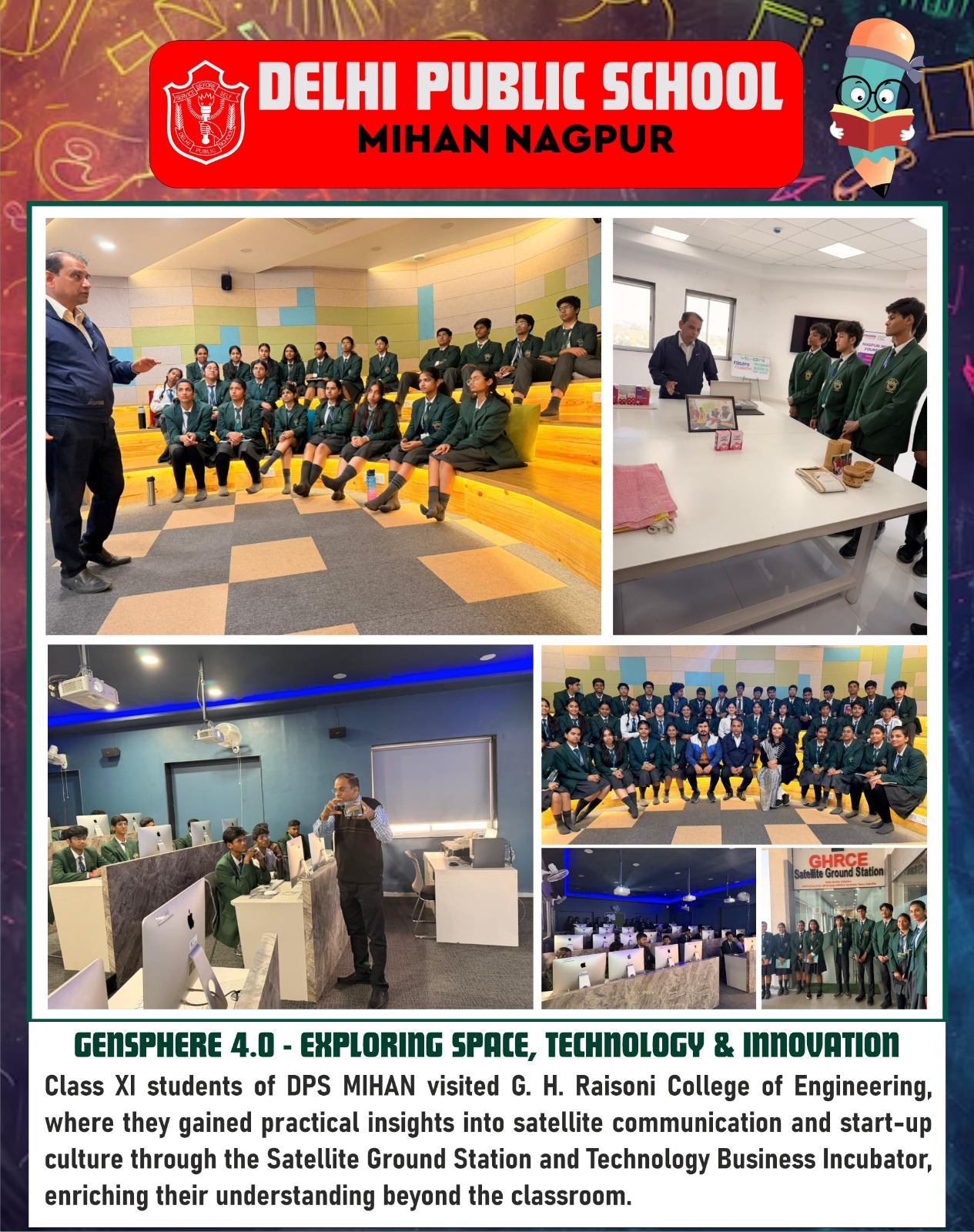 Class XI students of DPS MIHAN visited G. H. Raisoni College of Engineering, where they gained practical insights into satellite communication and start-up culture through the Satellite Ground Station and Technology Business Incubator, enriching their understanding beyond the classroom