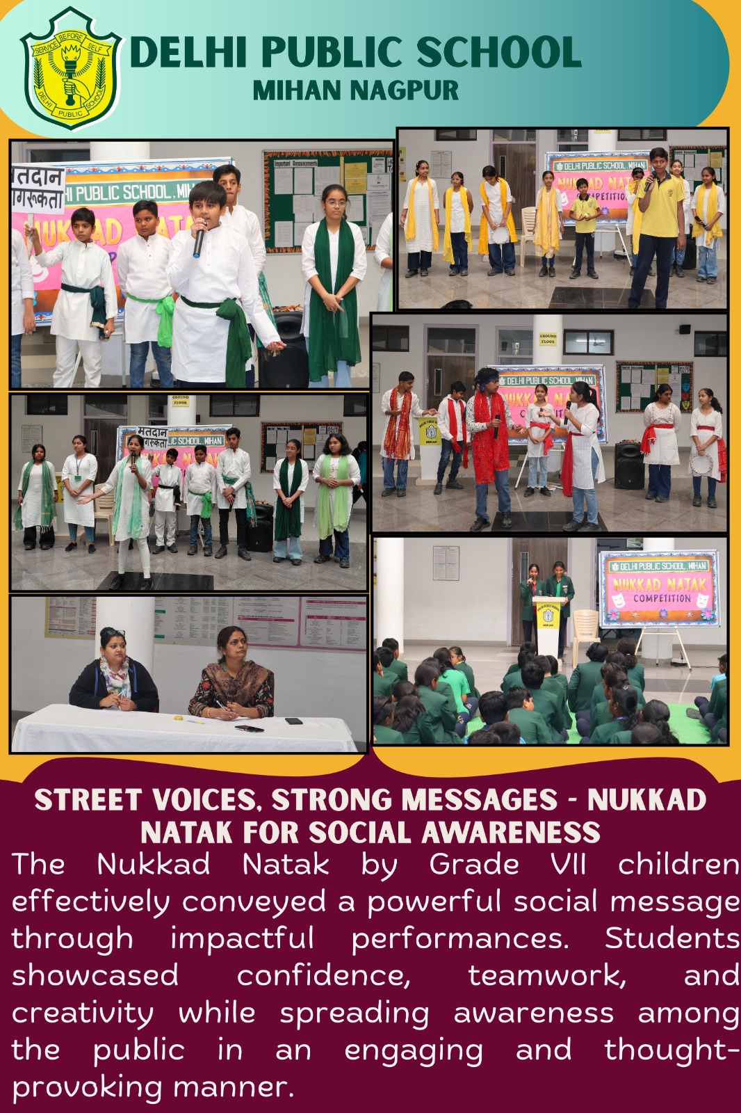 The Nukkad Natak effectively conveyed a powerful social message through impactful performances. Students showcased confidence, teamwork, and creativity while spreading awareness among the public in an engaging and thought-provoking manner.
