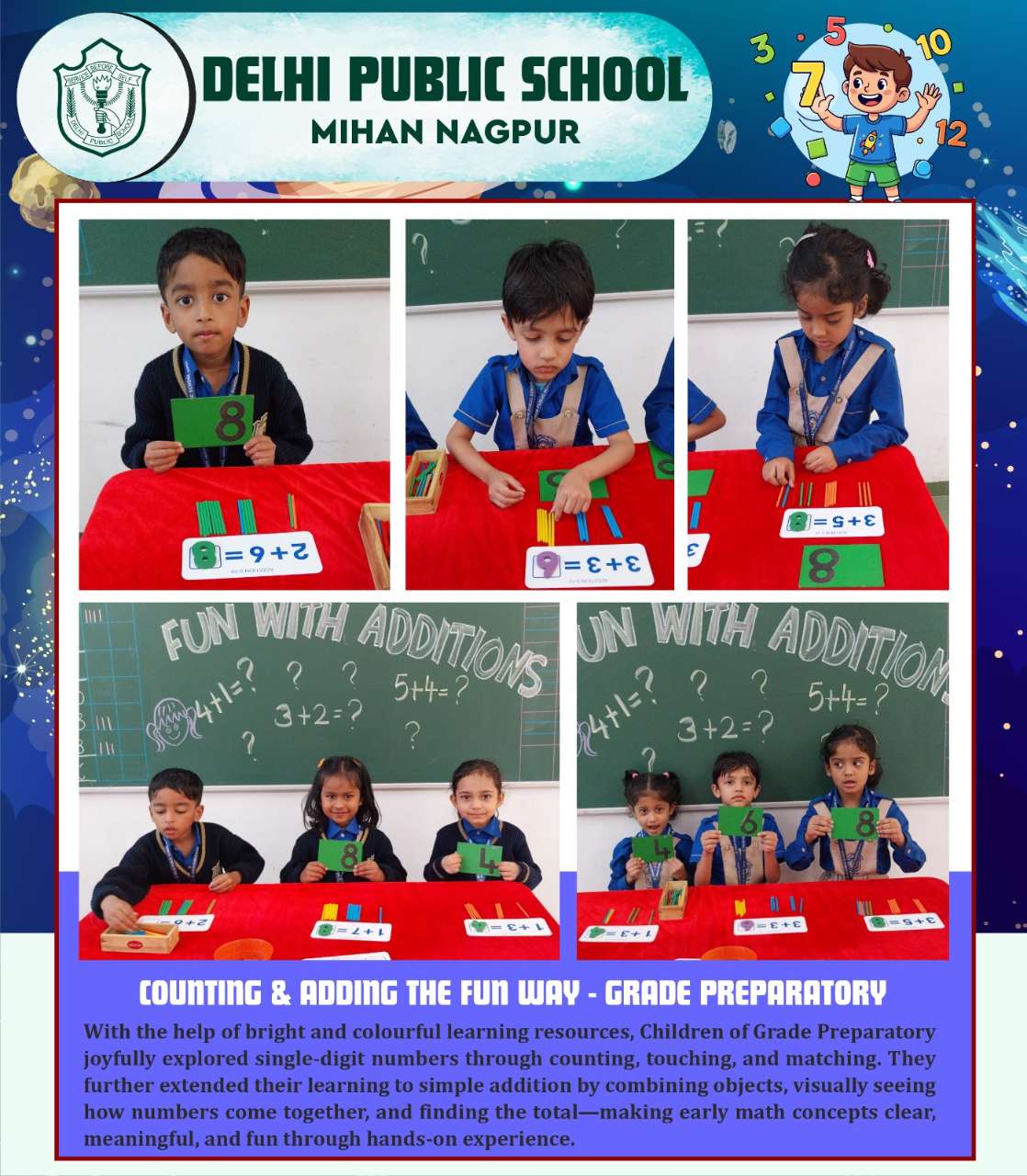 With the help of bright and colourful learning resources, Children of Grade Preparatory joyfully explored single-digit numbers through counting, touching, and matching. They further extended their learning to simple addition by combining objects, visually seeing how numbers come together, and finding the total-making meaningful, and fun through hands-on experience.