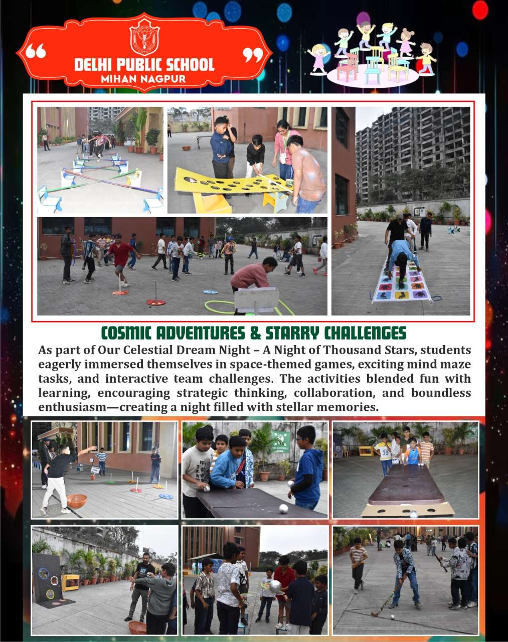 As part of Our Celestial Dream Night – A Night of Thousand Stars, students eagerly immersed themselves in space-themed games, exciting mind maze tasks, and interactive team challenges. The activities blended fun with learning, encouraging strategic thinking, collaboration, and boundless enthusiasm—creating a night filled with stellar memories.