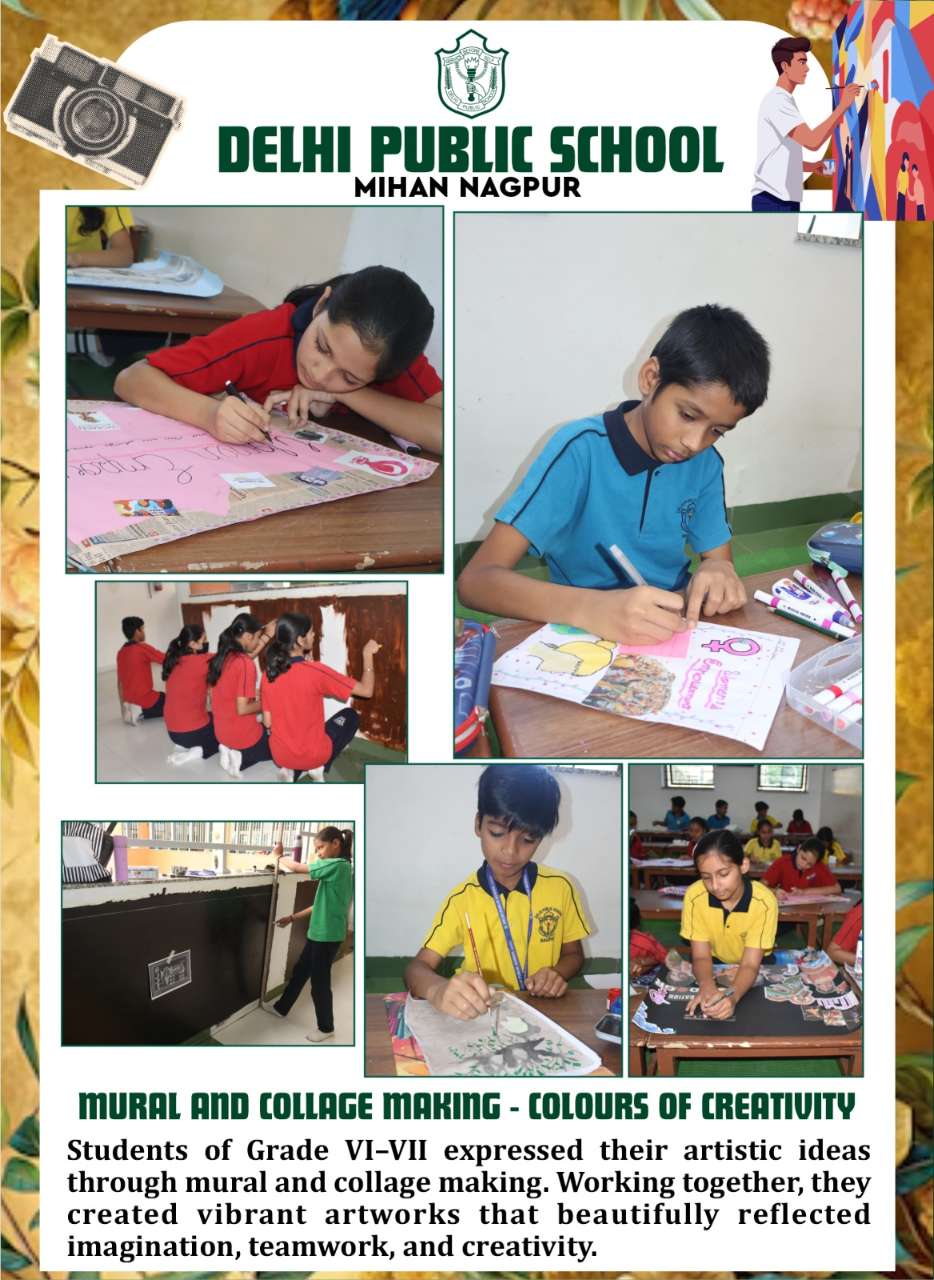 Students of Grade VI–VII expressed their artistic ideas through mural and collage making. Working together, they created vibrant artworks that beautifully reflected imagination, teamwork, and creativity.