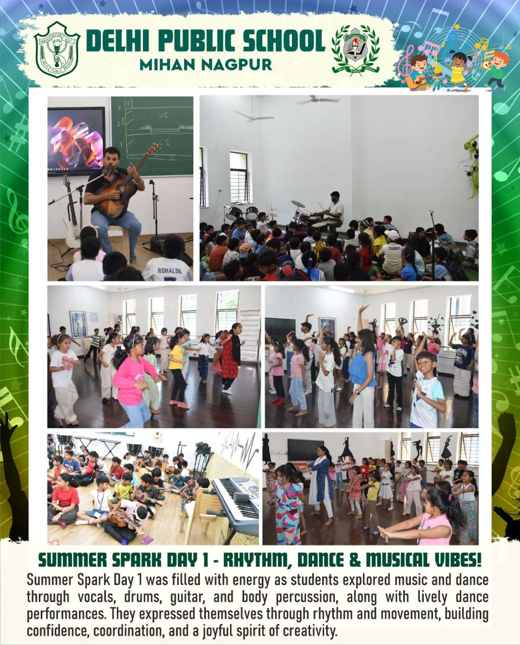 Summer Spark Day 1 was filled with energy as students explored music and dance through vocals, drums, guitar, and body percussion, along with lively dance performances. They expressed themselves through rhythm and movement, building confidence, coordination, and a joyful spirit of creativity.